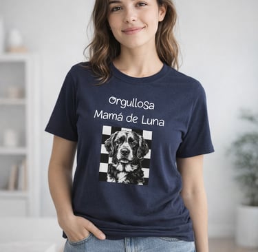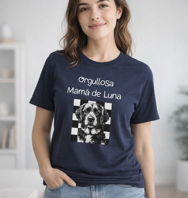 Personaliza tu camiseta con la foto de tu mascota y el texto que tú quieras.